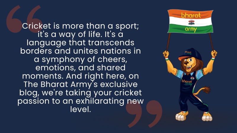 Welcome to The Bharat Army's Blog. Buckle up for an unmatched journey through the cricketing universe. Let's celebrate the sport that unites us, and let's do it in style. Your passion meets our platform, and together, we're about to create cricket history.